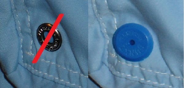 BUNKZ are patented, plastic grommet covers that fit directly into metal grommets on men's swim trunks